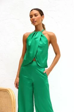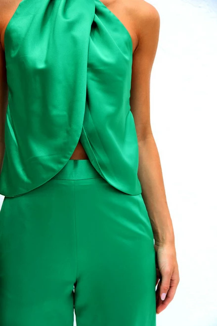 - open cross-over front top with raised hem