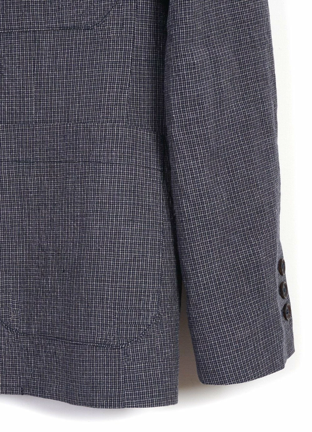 This creates an uneven small chequered pattern. Furthermore the yarns have different weights, so altogether it adds an uneven slightly crinkled surface.