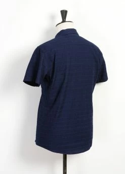 This complex Dobby cloth is made in Japan and has a handful of different stripes due to the weaving method. Dobby Weave is small designs that requires 25 different warp arrangements to complete one design repeat. In this case the Indigo dyed yarns create a beautiful relief or ornament to the surface.