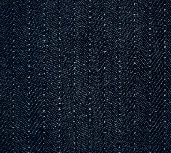 Italian, natural, indigo-dyed, herringbone fabric made of cotton. This fabric has a nice casual look, a dry hand feel and just the right weight for a spring summer wardrobe. A beautiful pin stripe will start to appear on the fabric the more it is worn. See last image