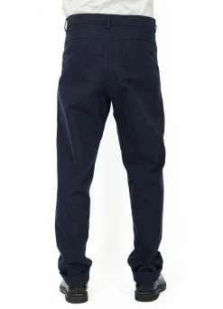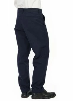 KEN is a wide cut trouser with a fitted top block and a relaxed silhouette. It has two paspel back pockets, slanted front pockets and topstitching throughout. It can be worn separately or as part of our well-known casual looking three-piece suits.