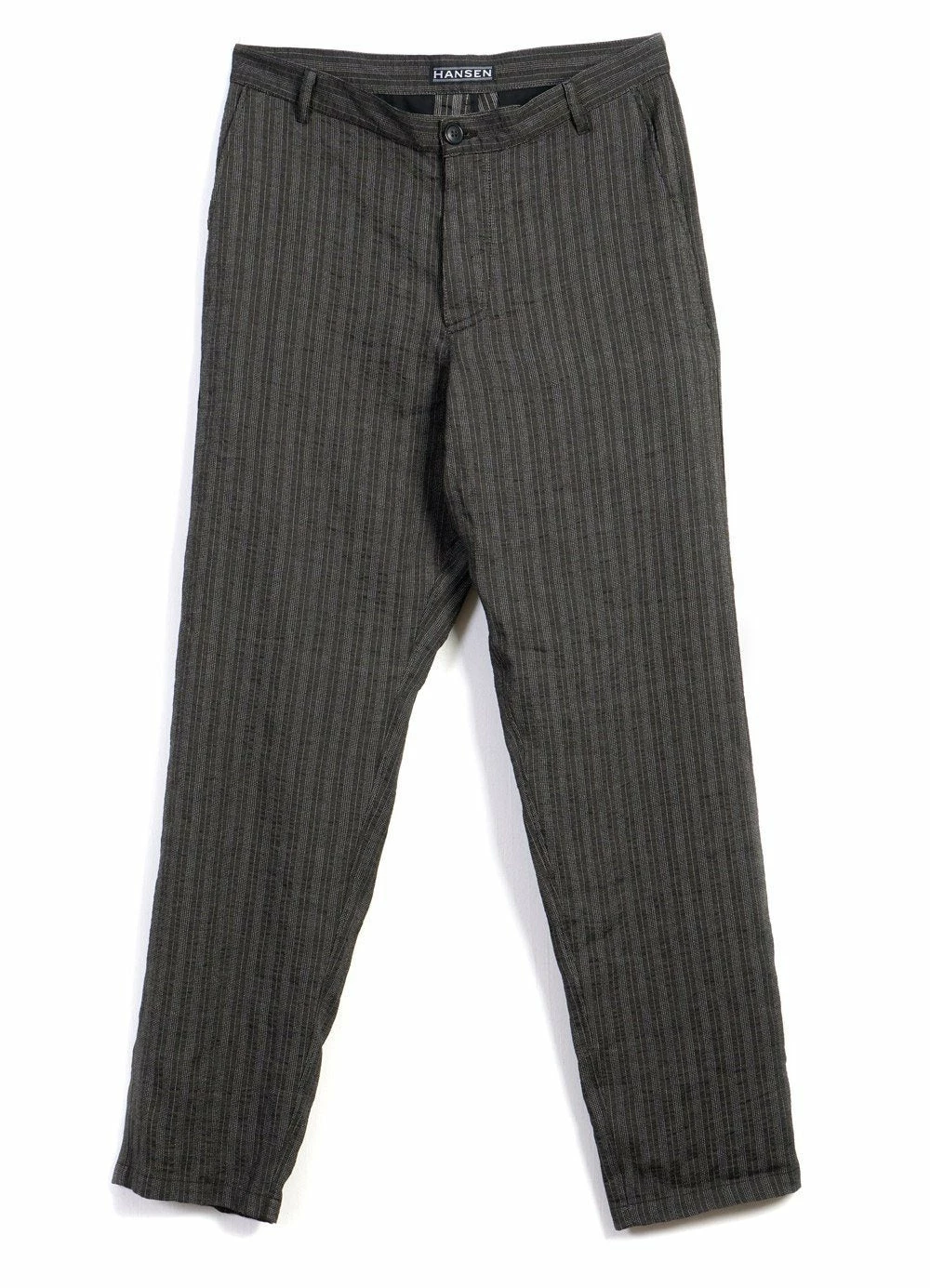 The linen gives a cooling and strong fabric. The viscose has a heavy drapery feeling and the uneven stripes give structural surface.