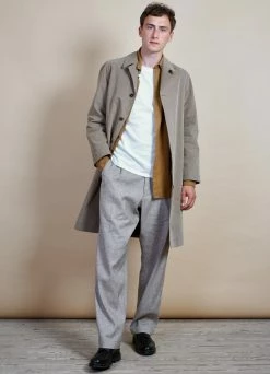 The Italian twill is made from a white cotton warp and a dyed linen weft. The cotton warp is a slub yarn and the linen weft has plenty of subtle dots and visible remains of flax seeds. Slub yarn; meaning that it has thicker sections along the yarn that create an uneven structure on the surface.