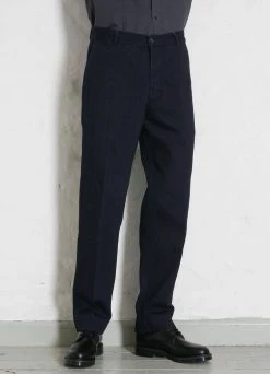 SVENNING is a HANSEN signature item that is characterized by not having side seams and a unique front pocket construction. It has a slim silhouette and the construction makes it fit many body types exceptionally well. The back rise is high and it is cut without a waistband.