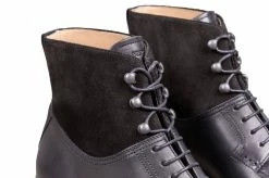 Anilcalf Leather Lace Up Boot with Suede Collar | Black