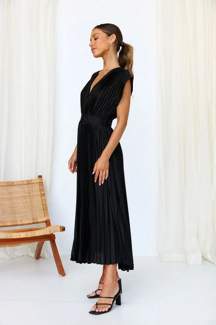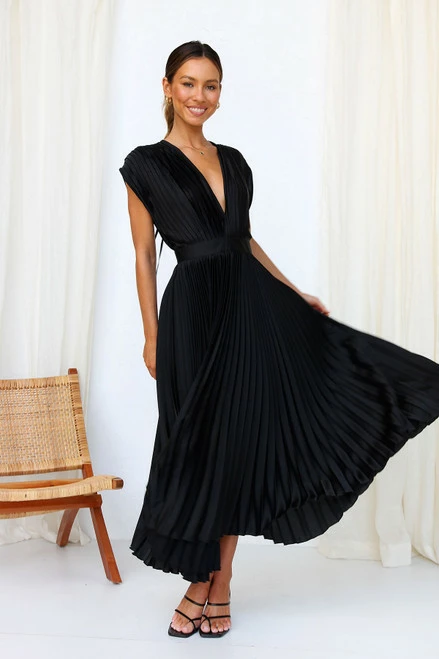 - pleated dress in black