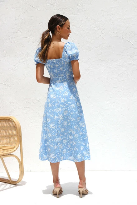 - light blue floral midi dress