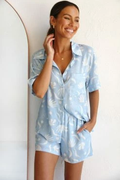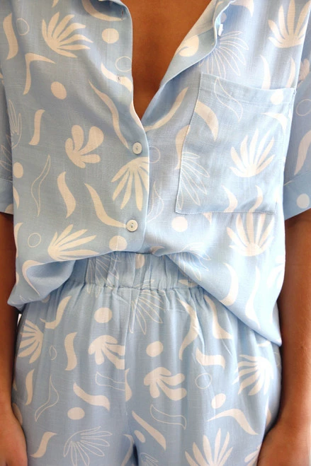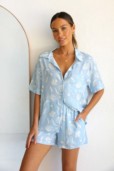 - sky blue print shorts